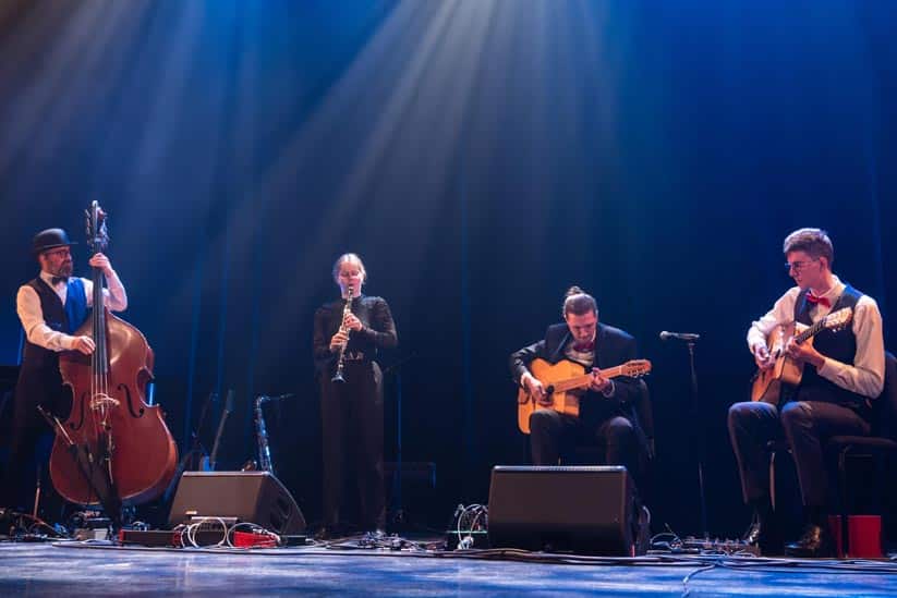 The Blaney Jazz Project is a Sherbrooke-based gypsy jazz quartet driven by a passion for the masters of the genre, while drawing inspiration from a wide range of artists. Driven by a desire to explore and renew the tradition, the ensemble is dedicated to the creation and performance of original compositions. Their first album, currently in the works, will bear witness to this artistic approach. Bringing together guitarists William Blaney and Philippe Belley, clarinettist Gisèle Blanchard-Girardin and double bassist Jean-Philippe Gagnon, the group offers a sound both rooted in authenticity and resolutely turned towards the present.